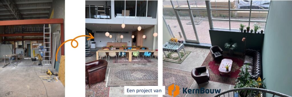 Hoe bijzonder is het dat onze eigen collega’s intern aan het verbouwen zijn! Voor de mensen op kantoor is het interessant om dit eens van dichtbij mee te maken. Een deel van de timmerfabriek is getransformeerd tot kantine en “chill” ruimte.